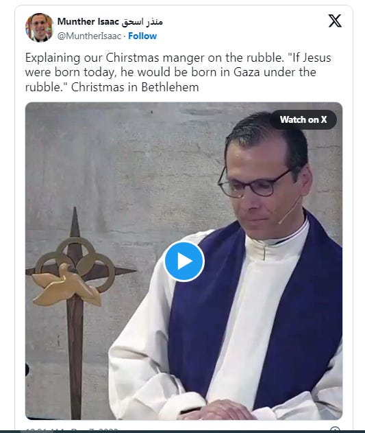 The sermon, made on Christmas Eve, came after Isaac previously stated that all Christmas celebrations in the birthplace of Jesus would be cancelled, as Israel continues to bombard the besieged enclave for the third month.