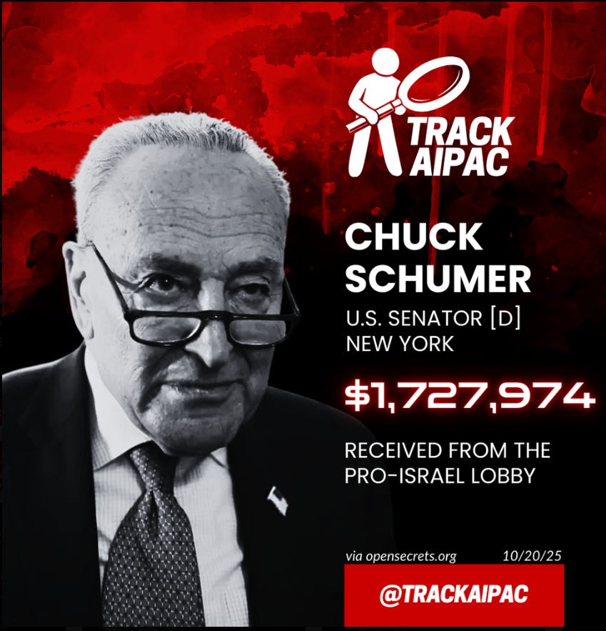 Chuck Schumer (D-New York) said on Sunday that one of his most important jobs as Senate minority leader is to “fight for aid to Israel,” as the Trump administration’s masked federal agents continue their deadly raids of the U.S. with little to no pushback from Democrats.