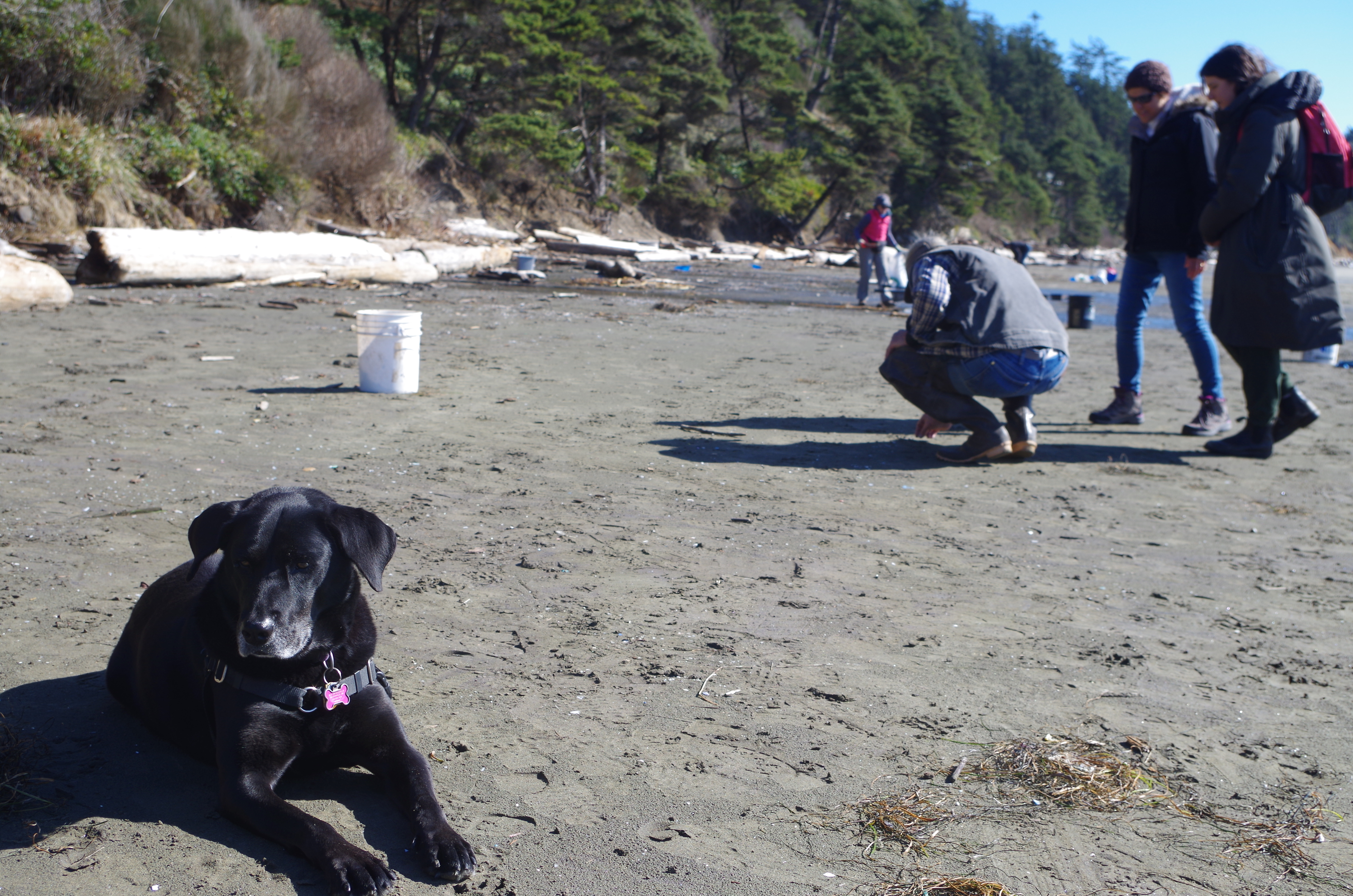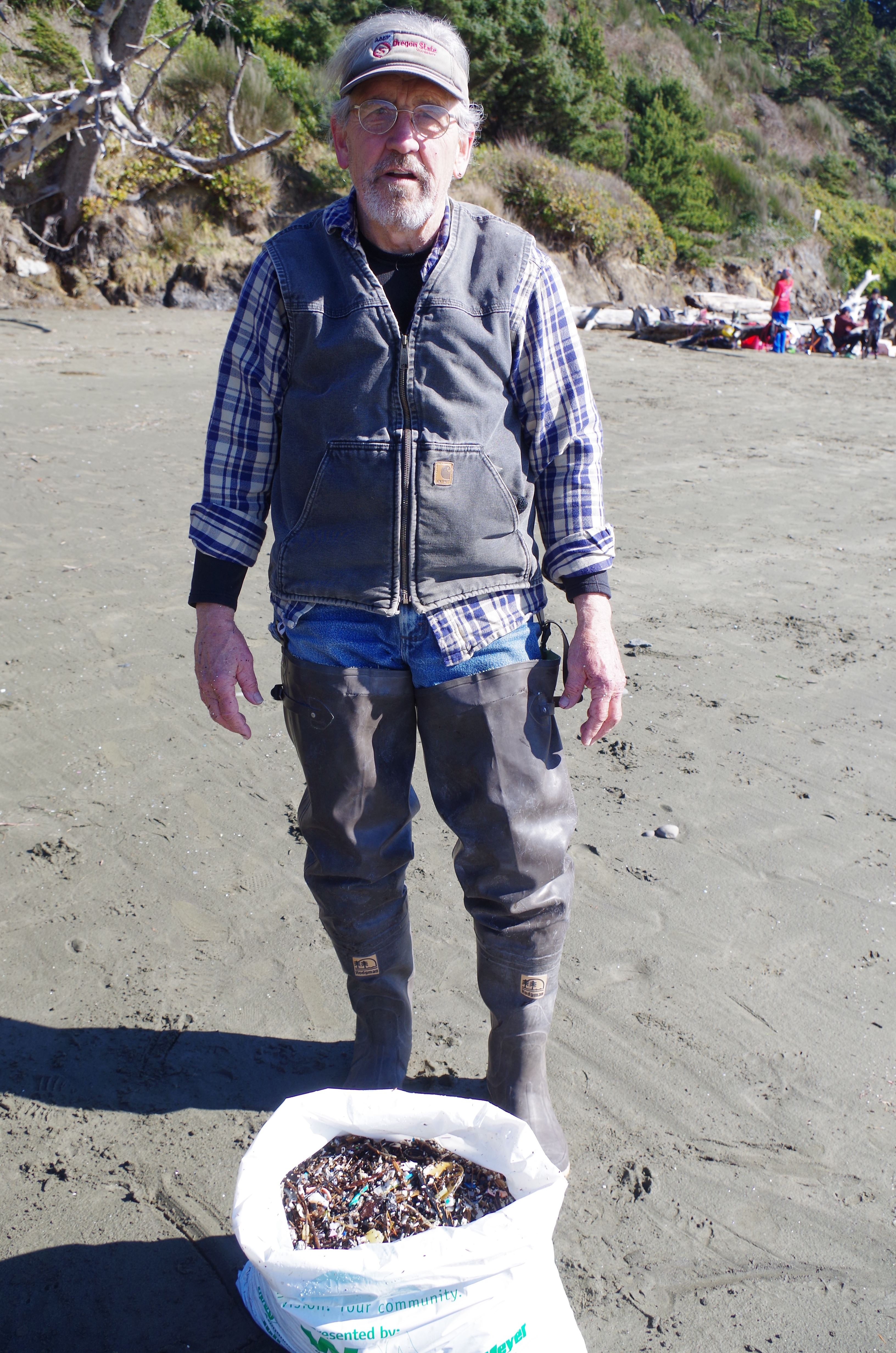 Helping hands included a few women, Mike Harrington, a 72-year-old member of the Siuslaw Chapter of Surfrider, and a black lab whose owner was down on her knees pulling out plastics of every color and shape.