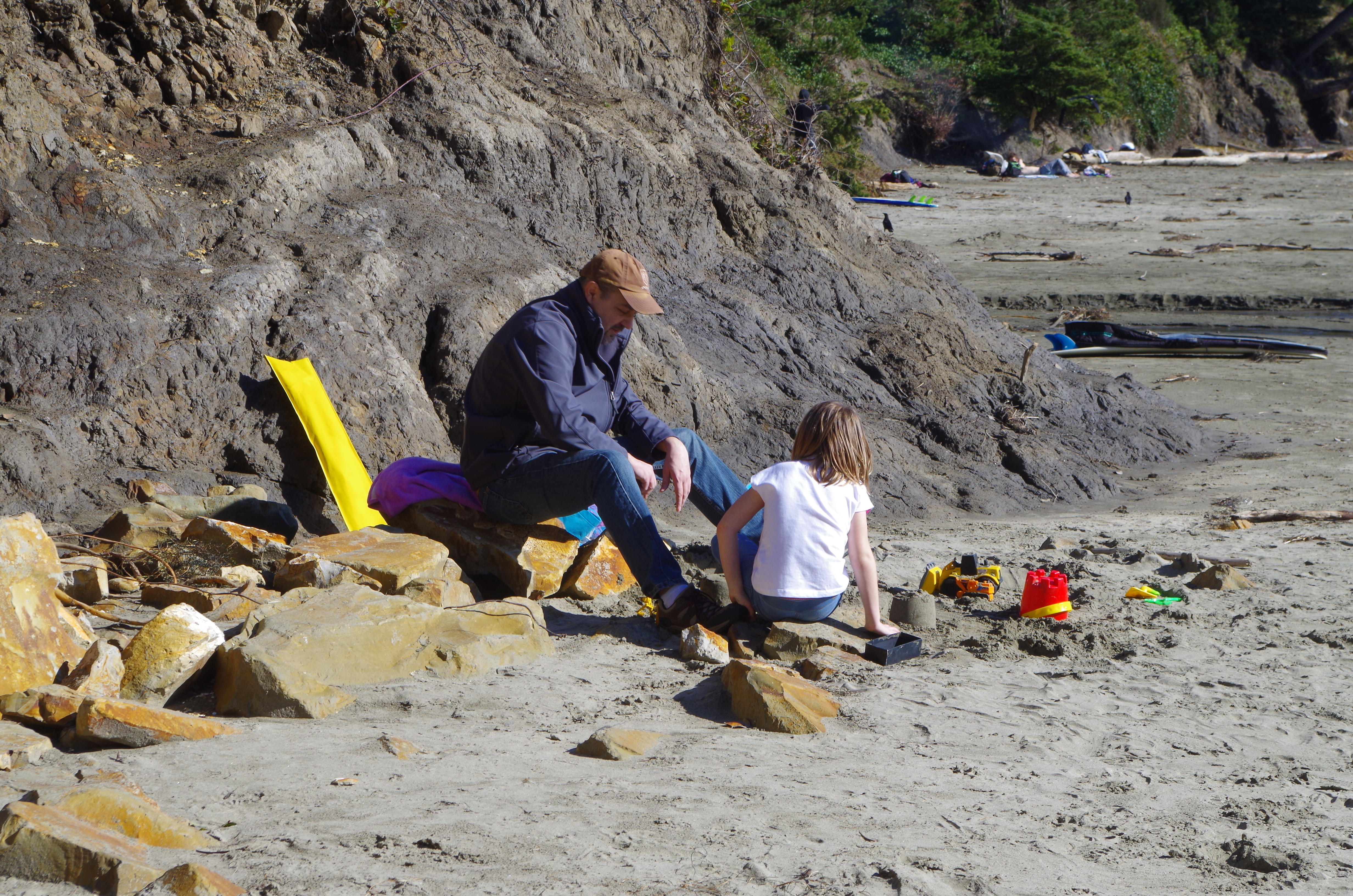 dad and daughter and plastic sand castle stuff