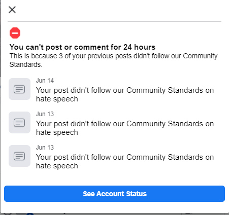 Interesting. So, when I repost things from MSM or Counter-punch, and then put in my own blur — “Oh these white devils, these MAGA Gestapo-wannabe’s, these Hitler-adoring fellows and gals,” that’s it for Fuck-You-And-the Horse-You-Rode-into-Town-On Facebook.