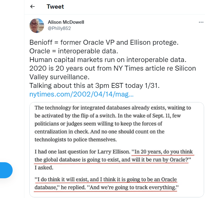 Yep, that billionaires, Benioff — tracking everything. And that is never questioned by the mainstream and corporate owned media.