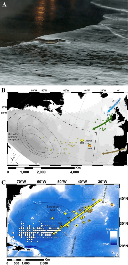 The point of pointing out these incredible animals, eels, is the point of that human compassion and passion, where people study earth, the amazing life histories of the very animals we take for granted, and those we eat, too. And, I was a kid with my family in the Azores where European eels ended up on their way from UK, say, or Germany, to the Sargasso Sea to breed.