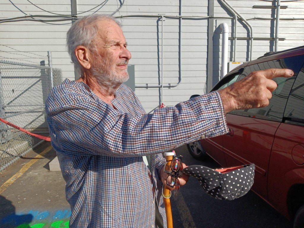 Yeah, met this guy, Mork X Twain, at a parts shop. He was in his planetary orbit, and his home-van was disabled in Newport, at a Burger King parking lot. I told him I’d drive him to his van, try a jump and then from there, who knows? So, there you have it — a van he lives in, gong from Newport to the Bay Area, and he said he’s 82, and estranged from his children but has contact with grandkids.