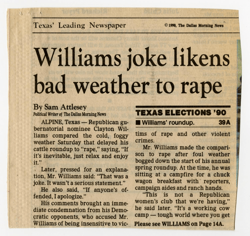 This is the background fodder for males like Daniel to believe he is above and beyond all laws of nature and ethics and emotional connection to fellow humans. TV, sports, power structures, SCOTUS, or any of them: Texas? All of them, subhumans, and I was in Texass teaching and reporting when this piece of human stain was running for governor!