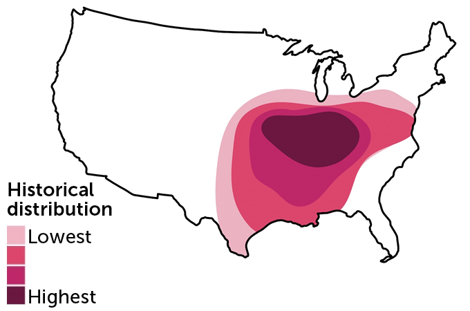 Histoplasmosis cases, then vs. now: Medicare records from 2007 through 2016 show that the fungi have spread, causing infection rates above a certain threshold in 47 states and Washington, D.C.