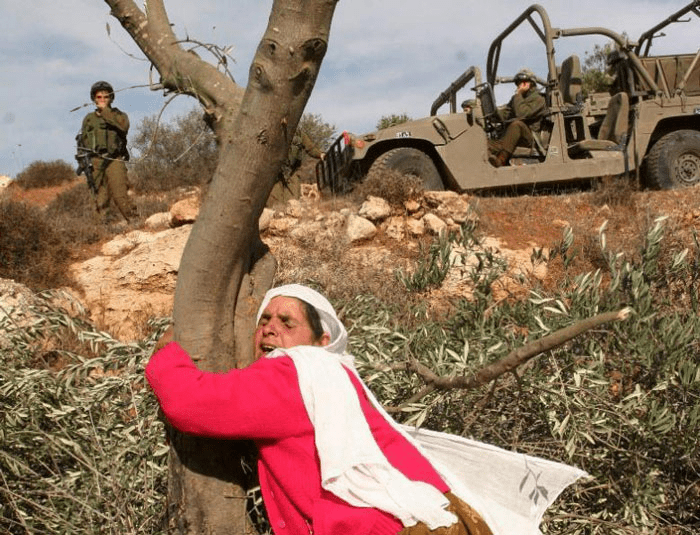 Will we the people rise like the olive trees cut down by the Jews in Israel? That resistance of Palestinians is asking to Palestine’s olive trees, a national symbol of pride. Israelis keep trying to destroy them by planting pine trees over them, but the olive trees keep growing back.