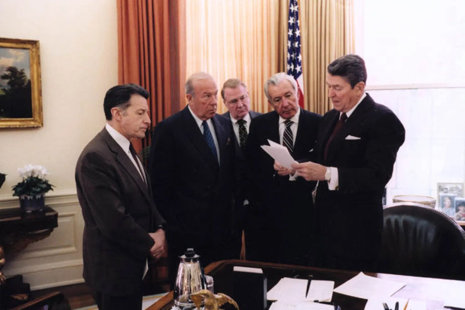 On December 1, 1981, Reagan signed an order that allowed the CIA to support the Contras with arms, equipment, and money. This order was implemented in conjunction with an overall strengthening of U.S. presence in Central America and the belief that covert activities are the most effective way to put pressure on a regime. This shift of foreign policy away from the Carter administration’s non-intervention culminated in June 1982 with the Reagan Doctrine which called for supporting democratization everywhere. It was at this point that the goal of the covert operations in Nicaragua shifted away from one of simply interdicting arms to one of supporting a change in government. Iran-Contra historian Theodore Draper, among others, argued, that this was the real goal all the long.
