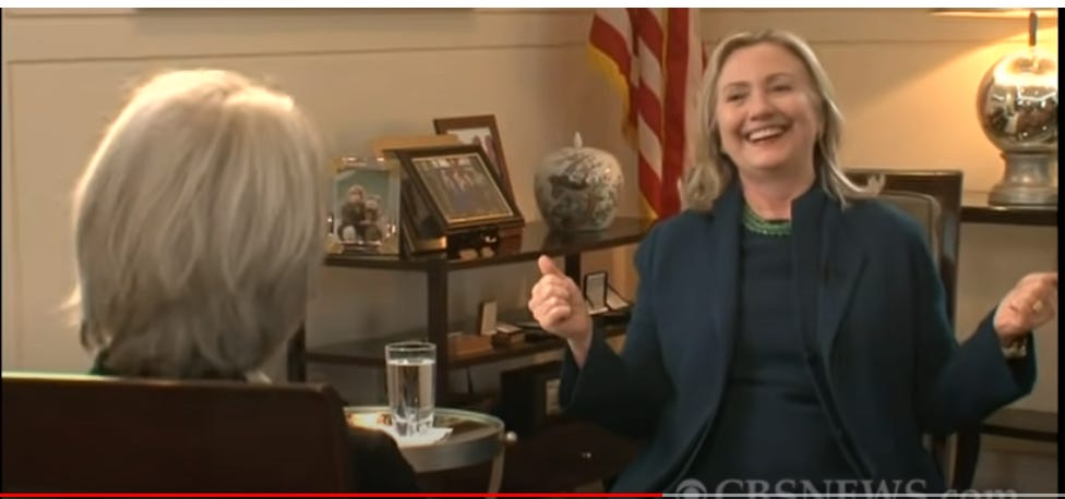 Human stain, with no redemption at all in their futures: “We came, we saw, he died,” she joked when told of news reports of Qaddafi’s death by an aide in between formal interviews. “I’m sure it did” have something to do with her very own visit to Libya just days earlier, she continues.