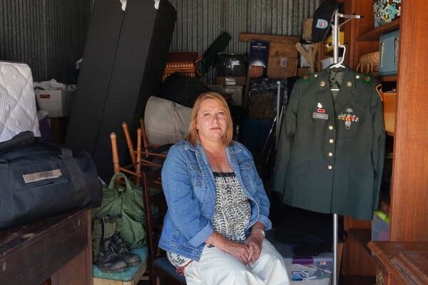 [Photo: Kellie-Lynn Shuble in front of her storage locker in Coraopolis, Pa., in July. She was harassed and assaulted throughout her time in the Army.Credit…Danna Singer for The New York Times]