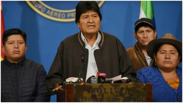 You know a hero here when you see, feel, and speak to one: Bolivian President Evo Morales speaks in El Alto, Bolivia, Nov. 10, 2019. Morales announced his resignation from office after the military and the police executed a coup against his elected government last year. | Enzo De Luca / Agencia Boliviana de Informacion . . . Morales’s Movement Toward Socialism (MAS) party and Indigenous Bolivians have long warned against foreign exploitation of these lithium reserves, which are currently processed inside the country.