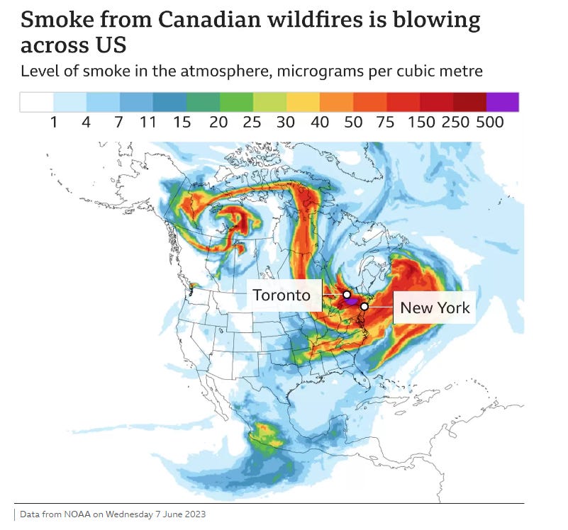 Nearly 100 million people are experiencing very poor air quality in North America.