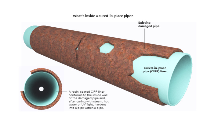 Cured-in-place pipe lining creates a new pipe inside an old one by inserting a soft, resin-soaked liner into the existing structure, inflating it with pressurized air, then heating it so it hardens. Because it’s faster and less expensive than traditional pipe rehabilitation, cities across the country are turning to cured-in-place contractors to upgrade their old underground lines.