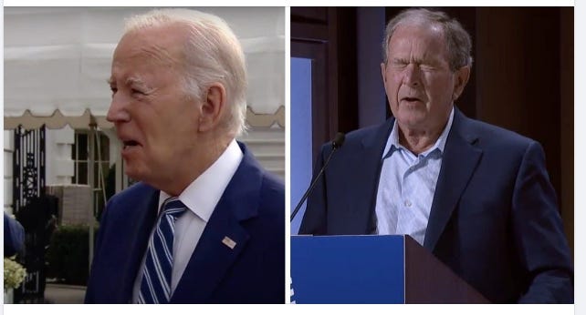 President Biden accidentally referred to Putin’s war in “Iraq” when answering questions from the press, a year after former president George W Bush made the same gaffe. Both men played crucial roles in the push to invade Iraq.