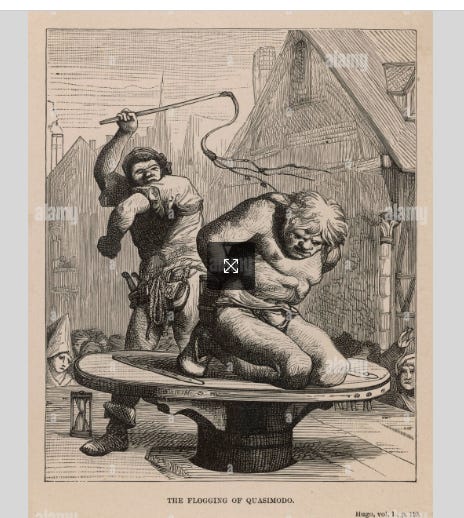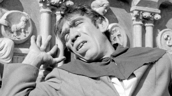 [Photo: Anthony Quinn plays Quasimodo in the 1956 film version of Victor Hugo’s novel The Hunchback of Notre Dame.]
