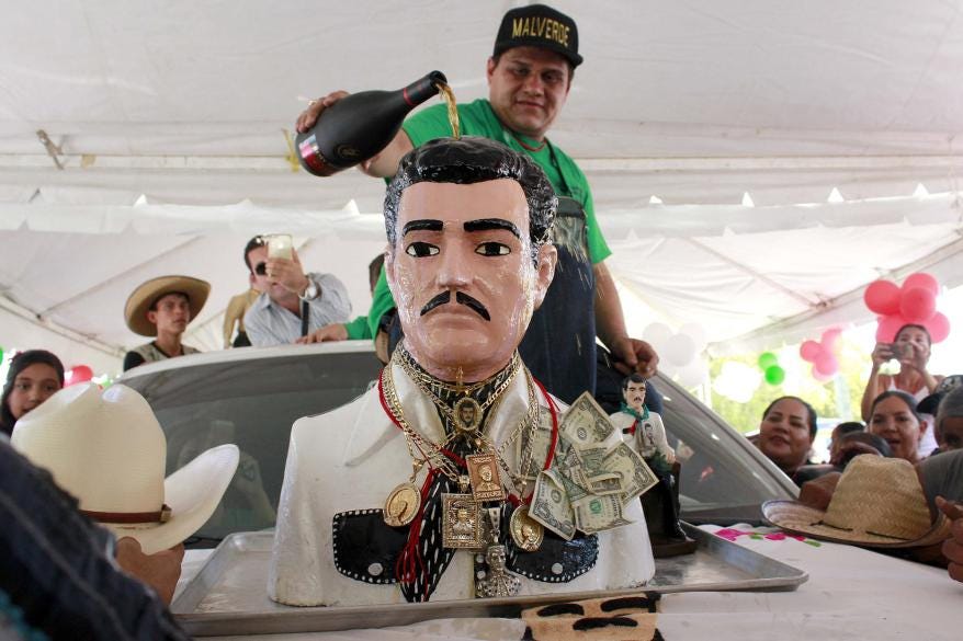 [Photo: Jesus Malverde: You might know the Robin Hood-like bandit from a Season 2 episode of “Breaking Bad,” when DEA agent Hank laughs at the notion of drug dealers praying to the saint. But indeed they do, as Malverde — who was allegedly killed by police in 1909 — has become the patron of outlaws, especially in his home state of Sinaloa, Mexico.]