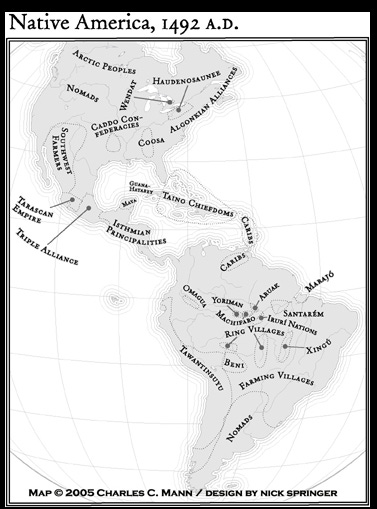 In the introduction, Mann challenges the thesis that Native Americans “came across the Bering Strait about thirteen thousand years ago, that they lived for the most part in small, isolated groups, and that they had so little impact on their environment that even after millennia of habitation the continents remained mostly wilderness.”