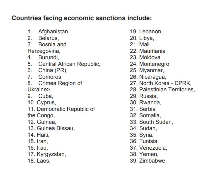This is collective punishment — battering en mass — to those hundreds of millions of people natives to those 39 countries.