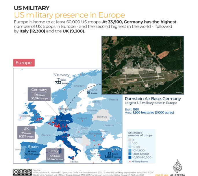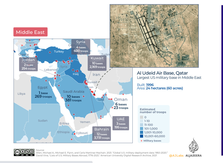 Infographic: US military presence around the world — The US controls about 750 bases in at least 80 countries worldwide and spends more on its military than the next 10 countries combined.