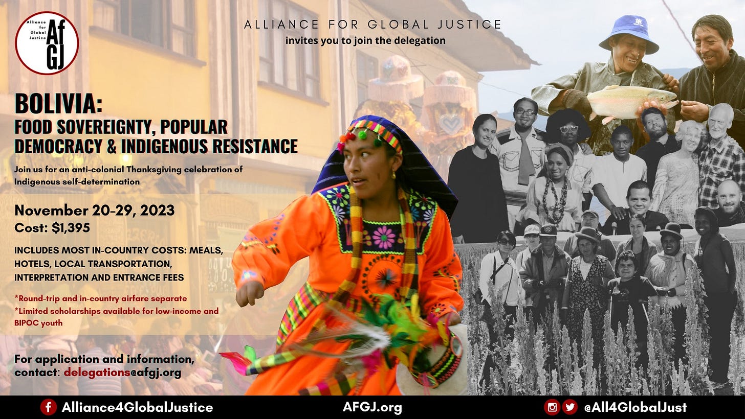 Learn about the Plurinational State of Bolivia’s Indigenous movements for sovereignty over food, land and water; gain an understanding of the spiritual and philosophical foundations of Pachamama; and discover the traditional ecological knowledge of the country’s peoples. Meet with farmers, community leaders, government officials and others. Experience the rich culture of the Andes and soak in the sights, sounds, people and politics during this historic moment for Bolivia’s popular democracy and Indigenous self-determination.