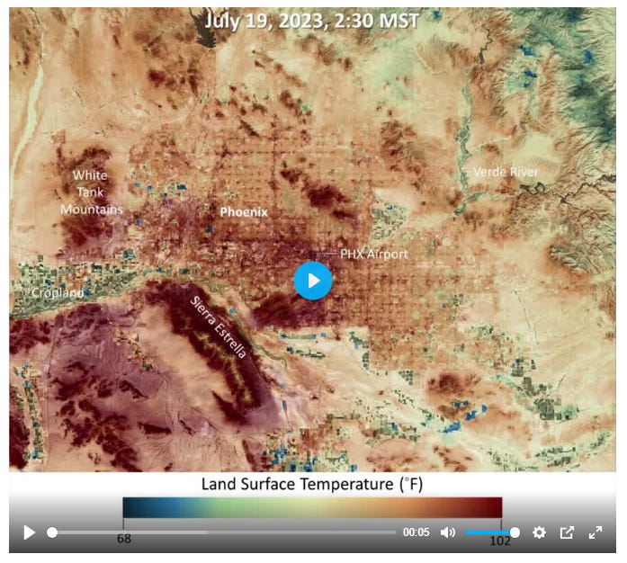 [Photo: Amid a record heat wave in July, the Phoenix area saw surfaces such as roads and buildings stay hot long after sunset, as documented in NASA-NOAA satellite data that was used to produce this series of maps. Unable to cool fully overnight, the surfaces grew progressively hotter through the month. Credit: NASA/JPL-Caltech]