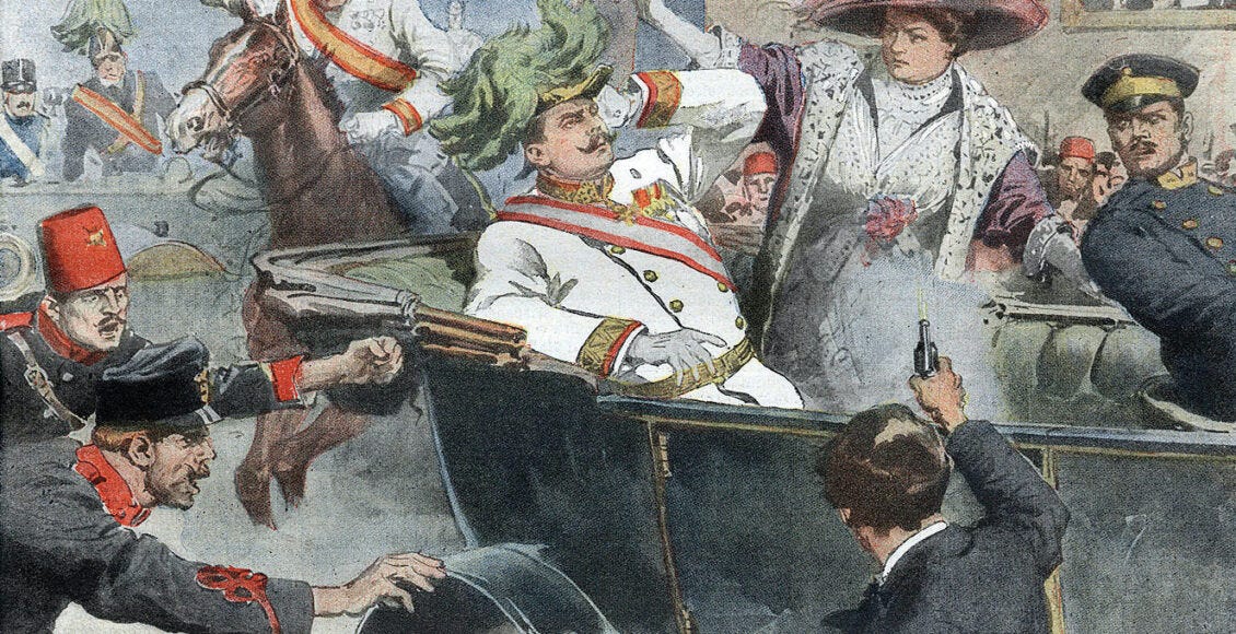 [Image: A drawing depicting Gavrilo Princip killing Archduke Francis Ferdinand of Austria in Sarajevo]