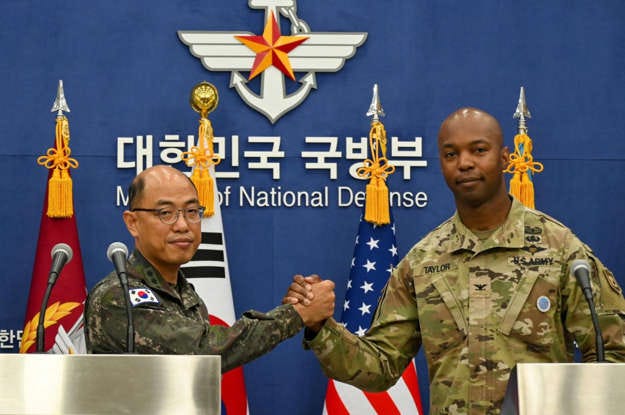 [Photo: U.S. and South Korean forces will hold the annual Ulchi Freedom Shield exercise Aug. 21-31, South Korean Joint Chiefs of Staff spokesman Col. Lee Sung-jun (L) and U.S. Forces Korea spokesman Col. Isaac Taylor (R) announced Monday. ]
