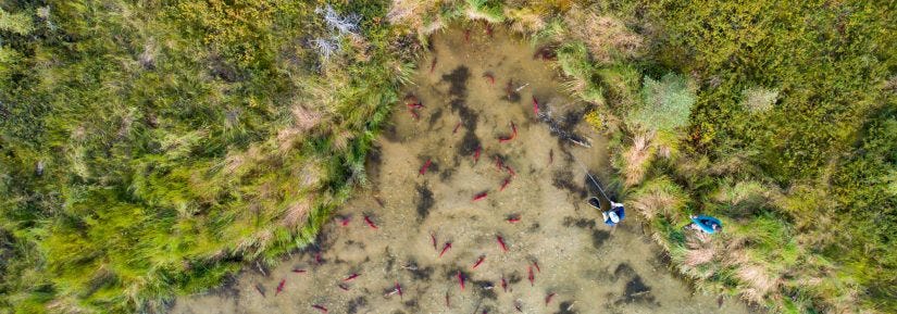 Today, 90 percent of wild Pacific salmon fish runs are gone: