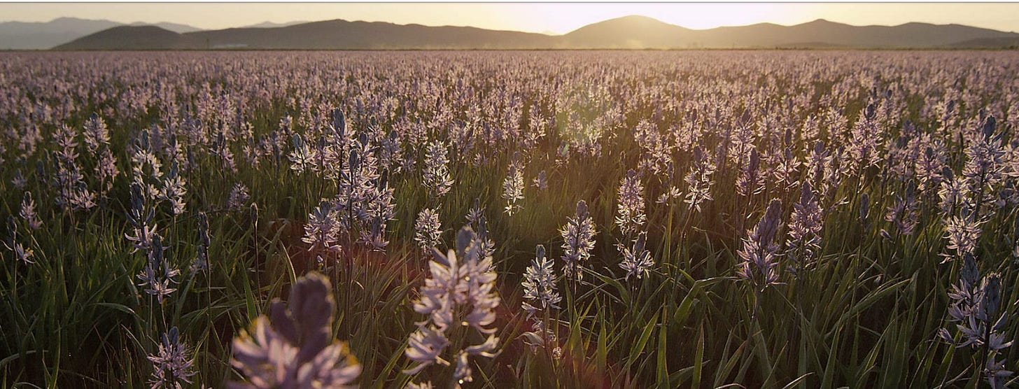 These were my first hours before I would begin the passage back in time, back to the lore and nuances of the camas, the roots that gave sustenance to dozens of tribes — the very tubers that fed the men of Lewis and Clark.