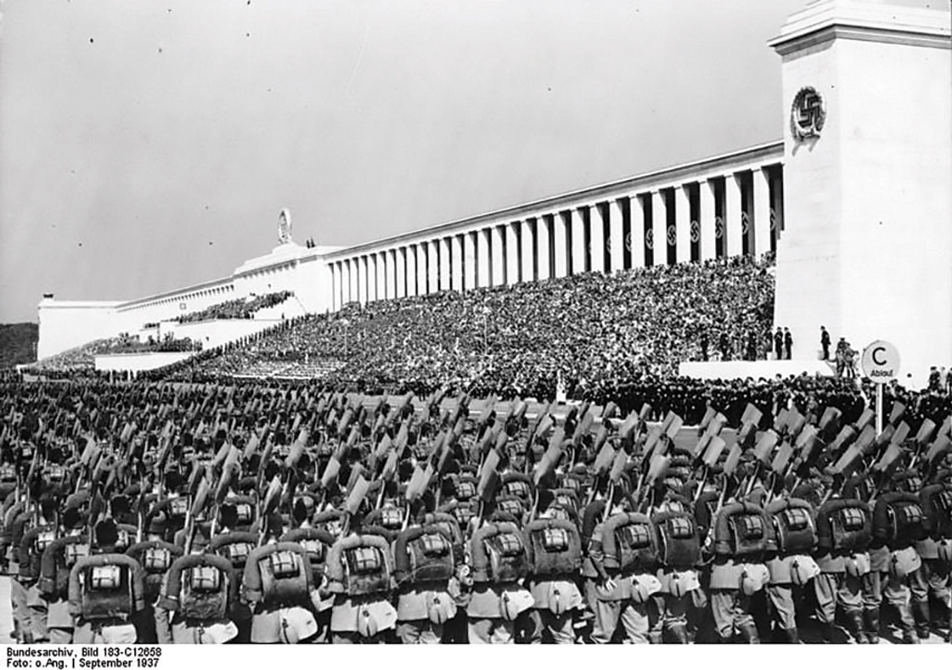 That’s what frequency following response is about. It’s kind of a natural tendency that our brains have, a proclivity our brains have. And basically, in the early 1930s when the Nazi government was taking power in Germany, basically they created a big stadium in Nuremberg, Albert Speer was the architect, and it was very intentionally acoustically designed to augment and enhance alpha entrainment. This is one of the most important first examples of mass mind control. Because what the German scientist community had discovered was, if you played alpha waves to patients who were having problems with their nervous system or psychosis or whatever, or even if they were just anxious, if you played alpha waves to these people they would became calm. Their brains would fall into a rhythm with the alpha waves. It would adjust their body chemistry in proportion to that. They would feel relaxed, and open and therefore more suggestible, which is a part of that, what happens. And so, they were able to get thousands of soldiers to line up in neat little rows and listen to Adolph Hitler blabber for hours and listen to all these other speakers go on and on as they stood there in the heat with perfect attention, because they were completely entrained. It was a remarkable demonstration of the power of this technology on a mass scale but it was very, very primitive compared to what we’re seeing today.