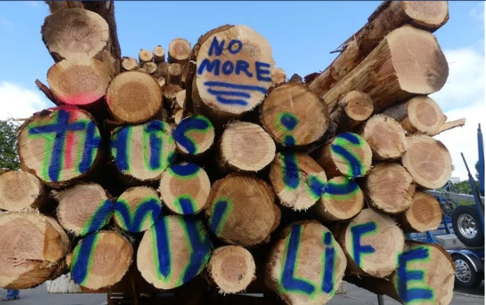 The model of forestry is to use it all as a commodity, to manage it (control and destroy it), to turn real ecologies into tree plantations. Some people call these places out here, deserts: