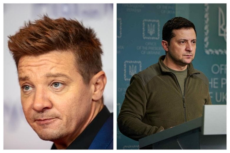IF YOU DON’T HATE AMERICA NOW, then go the way of the DoDo. This is one sick sick crummy viral civilization: “Renner could easily pass as Zelensky in a movie about the Ukraine-Russia conflict, but some people are forgetting that Zelensky was an actor prior to being elected president of Ukraine.