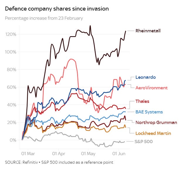Another boon for Raytheon will come from the US decision to send 1,400 Stinger anti-aircraft missile launchers. The company has already been awarded a $625m (£494m) contract to replenish the stocks. Germany is giving Ukraine 500 of the systems and more are coming from Denmark, Italy, Latvia, Lithuania and the Netherlands.