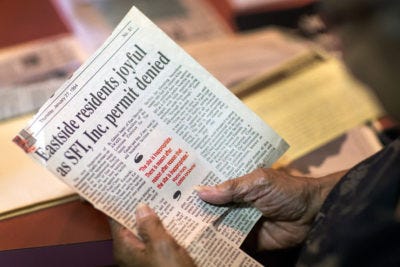 One by one nearly all of Brunetta Sims’ neighbors have disappeared. Some have died of cancer or other mysterious illnesses. Others packed up and moved when the air got too thick or too nasty for their little ones to handle. Many more relocated after being bought out by the bigwigs over at the oil plant next door.