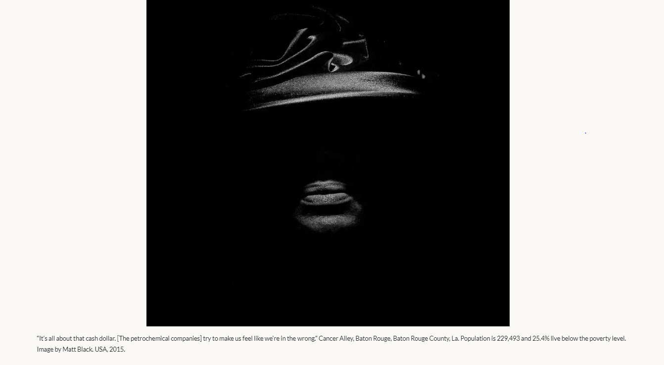 [Photo: Cancer Alley stretches 85 miles from New Orleans to Baton Rouge, where a dense concentration of oil refineries, petrochemical plants, and other chemical industries reside alongside suburban homes.Credit:Giles Clarke/Getty Images]