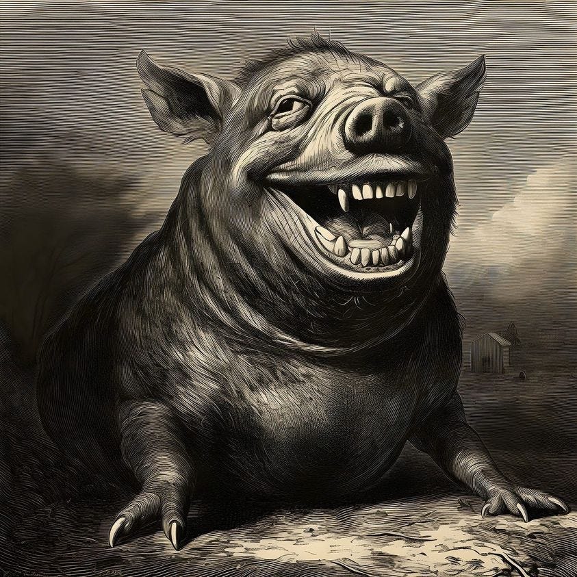 it’s not the elephant or gorrilla in the room — think golem, monster of war, depair, isolation