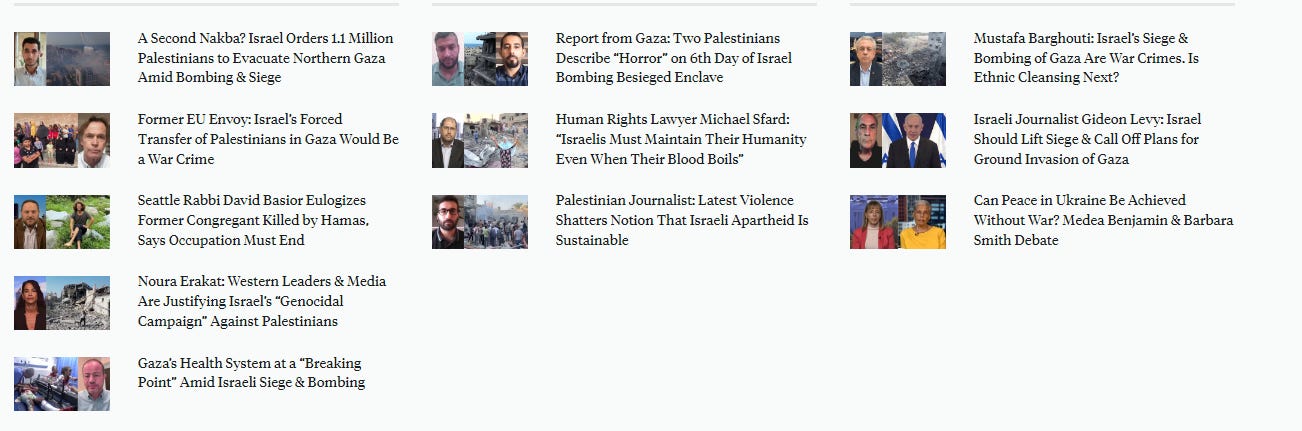 I mean, I am incredibly angered that word-of-mouth, unverified reports of, quote-unquote, “rape and decapitation,” which obviously draw on Islamophobic tropes, have garnered more and more political and global outrage than those very images, than a video of a nurse announcing and screaming in distress that her husband has been killed in an Israeli airstrike. And, you know, the PR strategy of the Israeli regime throughout all of this has been to invoke those Islamophobic sentiments, like calling it Israel’s — quote-unquote, “Israel’s 9/11.” And media outlets and journalists who have taken on this framing without any questioning not only work to equate the violence of a besieged, politically isolated group like Hamas with the violence of al-Qaeda and ISIS and so on, but they are also doing the dirty work for Israelis. They are preemptively justifying the genocide of hundreds and thousands of Palestinians. They are justifying a brutal onslaught that is about to come globally. And that should be alarming.