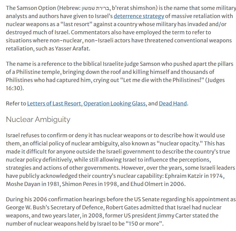 Israel has its kill switch, Sampson Option, because self-destruction is their only option!!!!