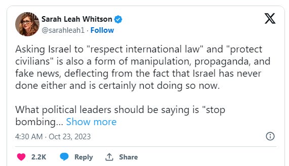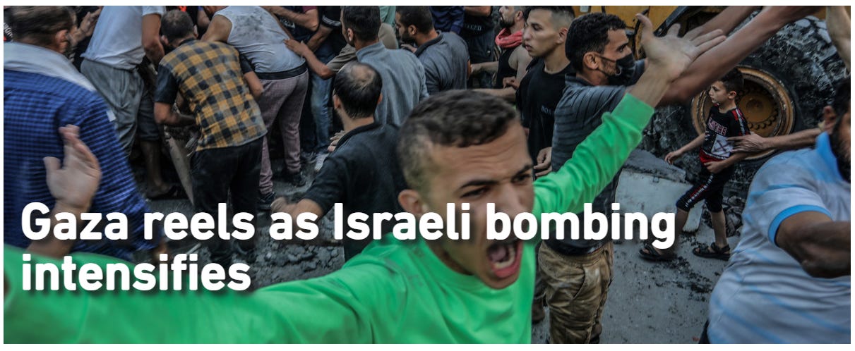 Referring to the people of Gaza as “human animals”, Defence Minister Yoav Gallant vowed to “eliminate everything”. An Israeli military official explained that the “emphasis is on damage, not accuracy”. Another said Gaza would be reduced to “a city of tents… There will be no buildings.”