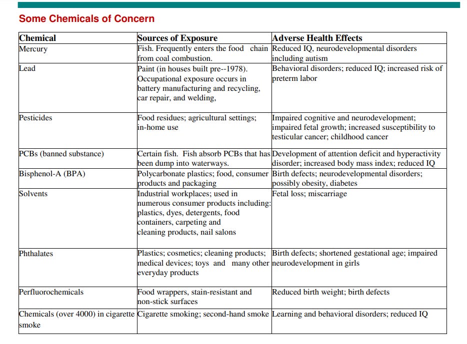 Prenatal chemical exposure can have lasting detrimental impacts on the lives of children and can cause diseases that show up in adulthood. Harmful chemicals cause the most disease when they are present during fetal development, because organ systems are being developed and the rate of growth is very fast.