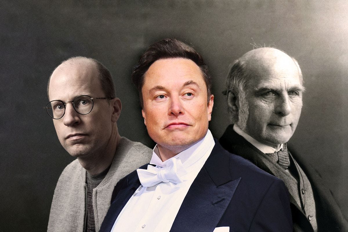 [Photo: (L-R) Nick Bostrom Philosopher at the Future of Humanity Institute in Oxford, Tesla CEO Elon Musk and Sir Francis Galton the father of Eugenics (Photo illustration by Salon/Getty Images) ]