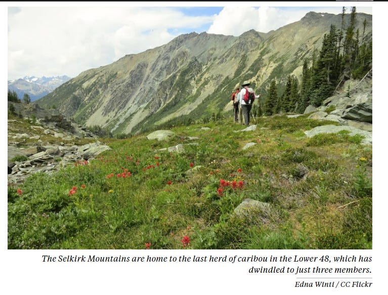 The beauty of this particular herd — hooked into the Selkirk range covering northeastern Washington, North Idaho and southeastern British Columbia — is its tenacity in holding on despite a dwindling range. Sprengel and others, however, don’t think they’ll be able to beat the odds for long. Based on the reports, three dozen caribou are hanging by a hoof in the Selkirk Caribou Recovery Area.