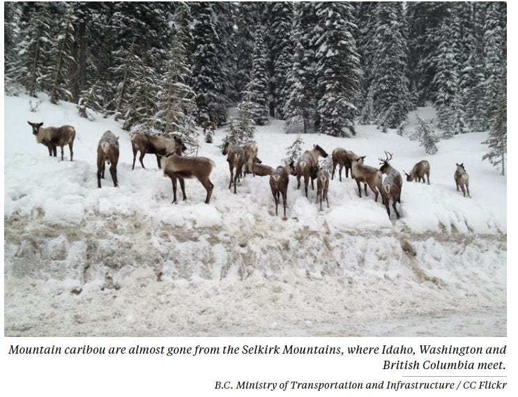 The beauty of this particular herd — hooked into the Selkirk range covering northeastern Washington, North Idaho and southeastern British Columbia — is its tenacity in holding on despite a dwindling range. Sprengel and others, however, don’t think they’ll be able to beat the odds for long. Based on the reports, three dozen caribou are hanging by a hoof in the Selkirk Caribou Recovery Area.