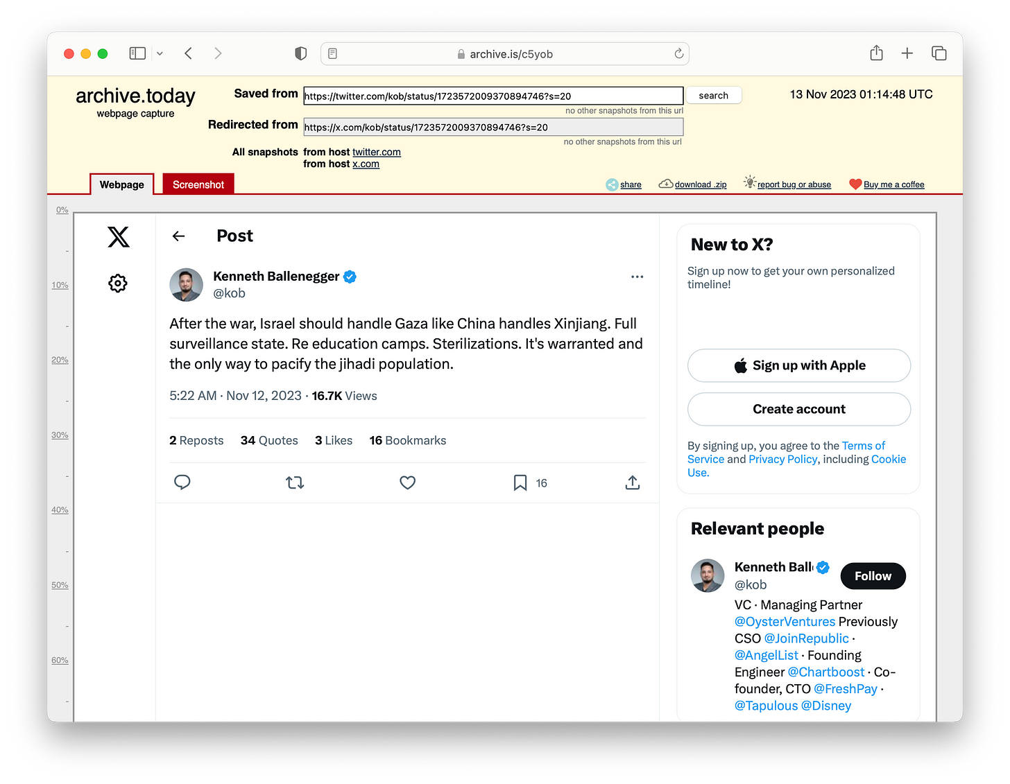 I don’t know what to do, but I know these are not my people. Who can work with people whitewashing genocide. Are we supposed to pretend it’s business as usual as we send our friends’ intros, frolic at conferences, discuss monetization strategy.
