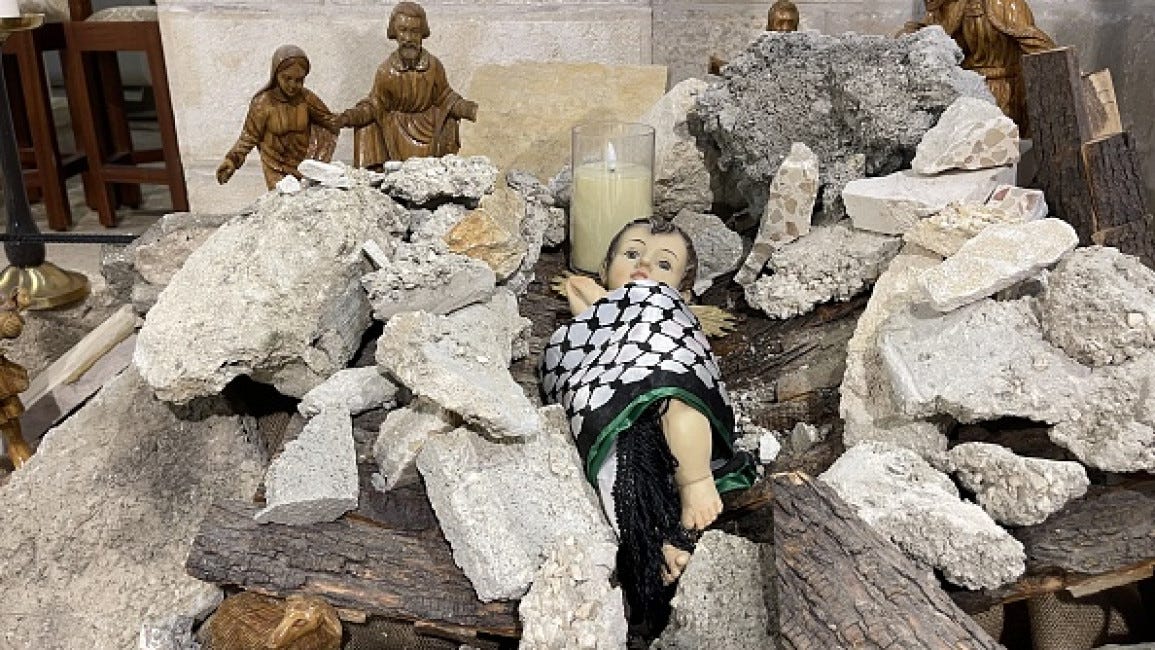 [Photo: The nativity scene depicting a baby amid the rubble symbolises Gaza’s war [Getty] ]