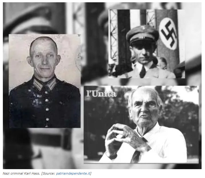 Several names in this network appear in the records declassified as a result of the Nazi War Crimes Disclosure Act, such as that of Nazi SS officer Karl Hass, co-responsible for the Fosse Ardeatine massacre in Italy during WWII.