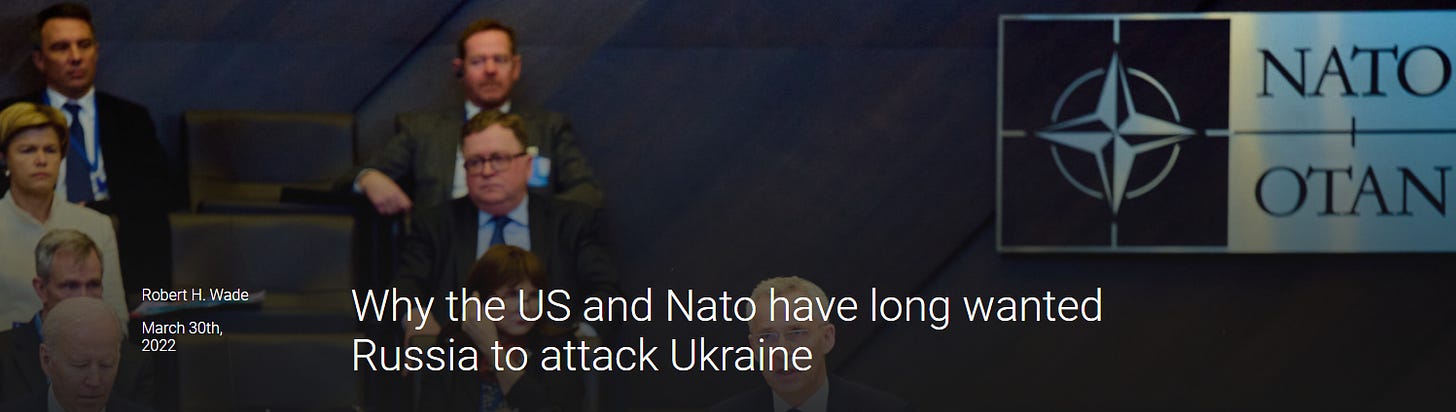 These statements reflect long-standing US strategy for regime change in Moscow, with Ukraine as the pivot. On one hand, send sufficient military and other equipment to Ukraine to sink the Russian military in a quagmire. On the other hand, impose severe, far-reaching sanctions on Russia so as to cause major disruption to the Russian elite and a major contraction of living conditions for the Russian middle-class. The combination should last long enough for Russians to rise up to overthrow Putin and install a Yeltsin-like President more sympathetic to the West.