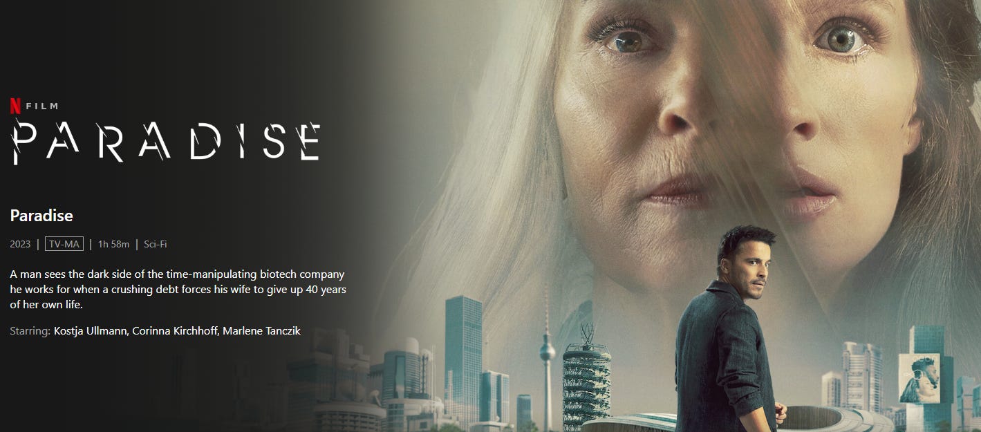 Oh, so some impossible machine sucks the life out of you — you can sell five years of your life, so a “match” can pay for those five years, or in the case of the protagonist, his wife gets 40 years sucked out because she owes the bank for a fancy apartment mortgage in Berlin.