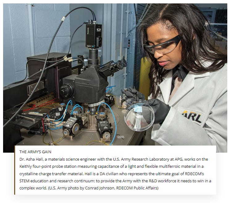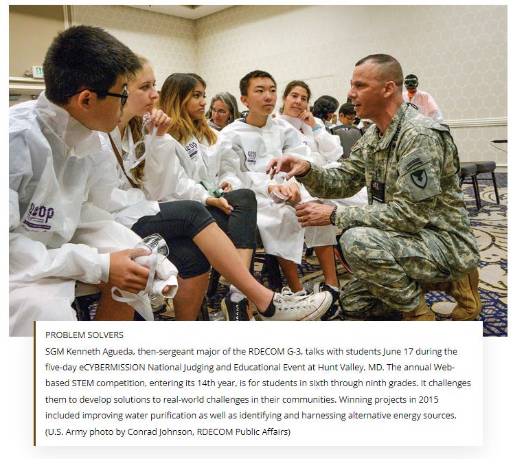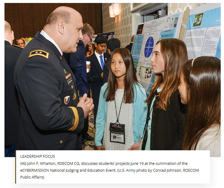 The U.S. Army Research, Development and Engineering Command (RDECOM), on behalf of the Army, is committed to growing the next generation of scientists and engineers to deliver the decisive overmatch the nation needs to win in a complex world. As a community, we must develop a national strategy to ensure America’s future security through a robust continuum of science, technology, engineering and mathematics (STEM) education and research. (source)