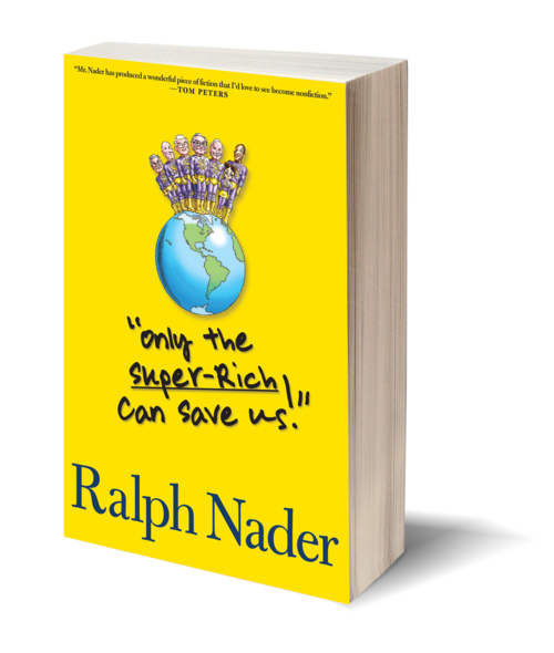 Nader’s Press — So begins Only the Super-Rich Can Save Us, the vivid fictional account by political activist and bestselling author Ralph Nader that answers the question, “What if?” What if a cadre of super-rich individuals tried to become a driving force in America to organize and institutionalize the interests of the citizens of this troubled nation? What if some of America’s most powerful individuals decided it was time to fix our government and return the power to the people? What if they focused their power on unionizing Wal-Mart? What if a national political party were formed with the sole purpose of advancing clean elections? What if these seventeen super-rich individuals decided to galvanize a movement for alternative forms of energy that will effectively clean up the environment? What if together they took on corporate goliaths and Congress to provide the necessities of life and advance the solutions so long left on the shelf by an avaricious oligarchy? What could happen?
